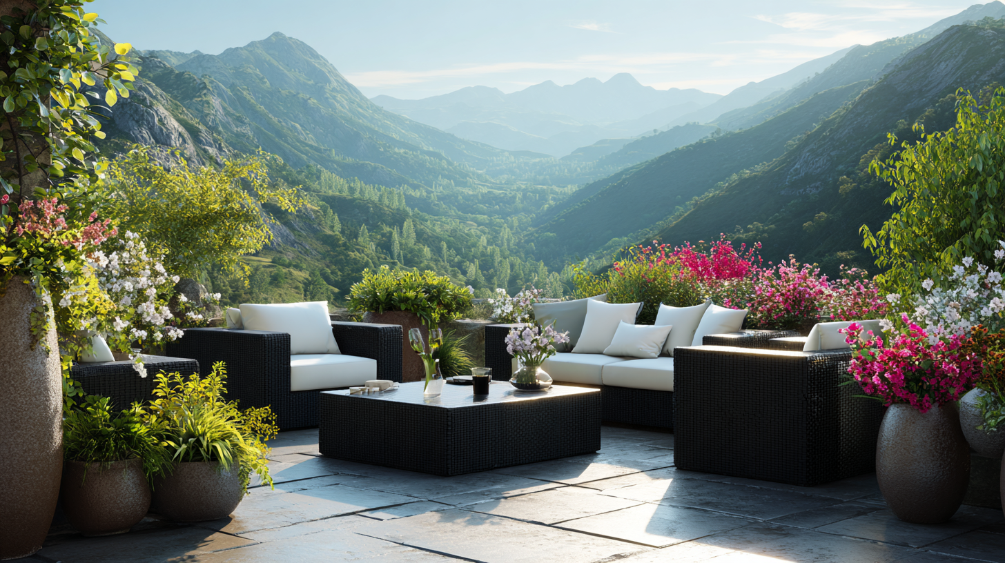 Outdoor Minimalist Black Wicker 6-Seater Dining Set